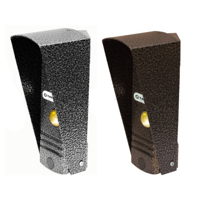 Характеристики: HD CMOS камера, 700Твл, 1Лк) 4-х проводная, универсальная антивандальная. Аудиоканал на базе аудиопроцессора. Адаптивная светодиодная подсветка. Накладная с защитным козырьком и поворотным кронштейном для крепления под углом 30°. -40…+50С. Размеры (без козырька): 120х40х23 мм. Цвета: медь, серебро.